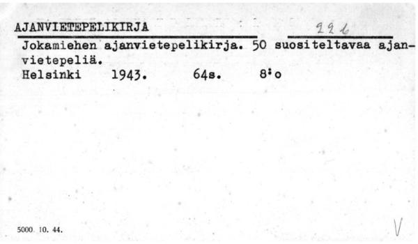 Valokuvaus. Filatelia. Pelit. Askartelu. Unikirjat. Ennustuskirjat.