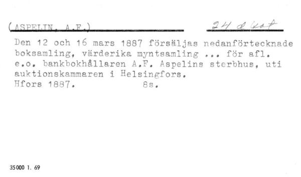 Antikvariaattien ja kirjahuutokauppojen luettelot.