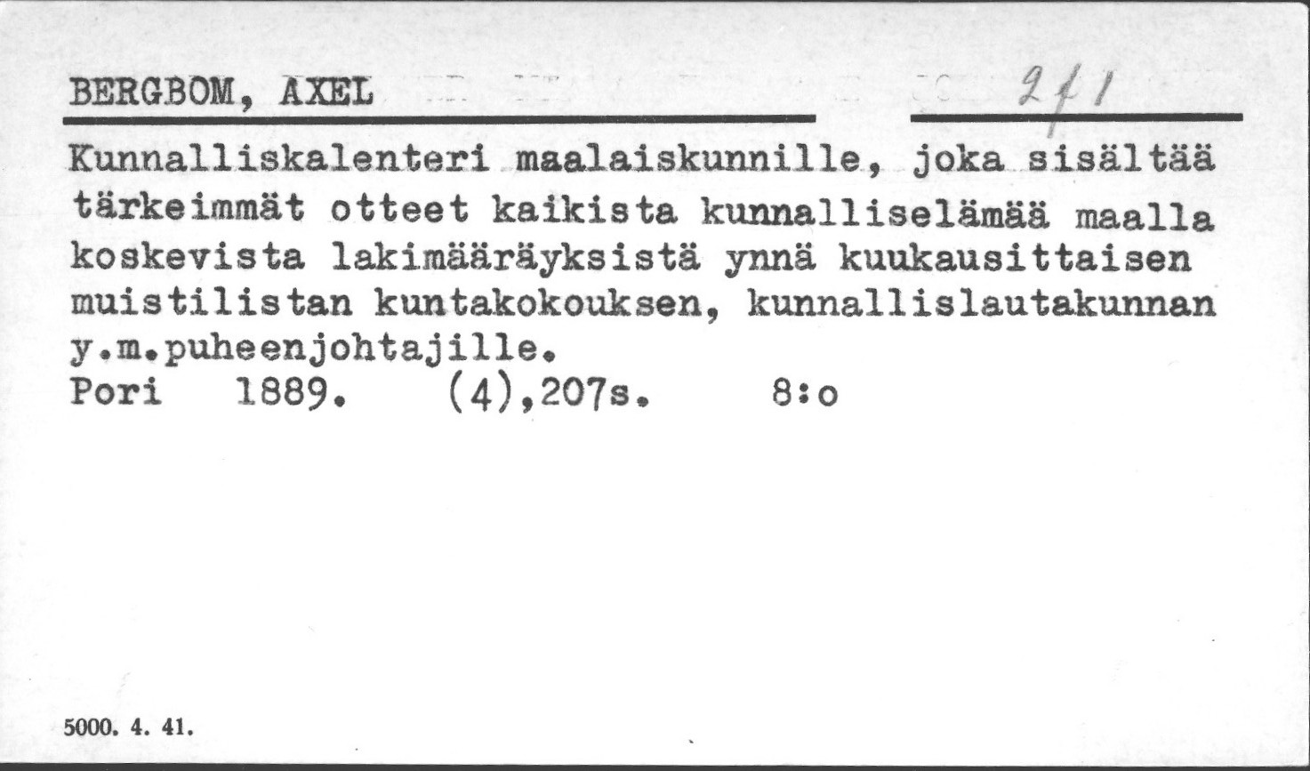 Yleinen kunnallishallinto. Palolaitos. Poliisilaitos.