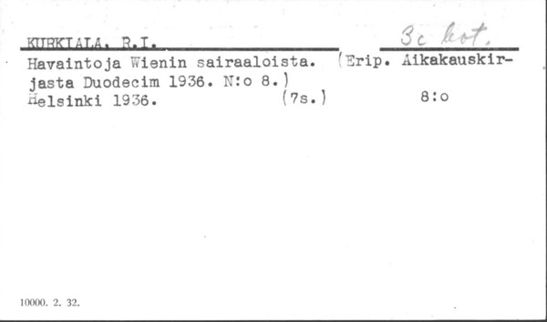 Sairaalat. Lääkärit. Sairaanhoitajat. Apteekit. Kylpylät. Sauna.