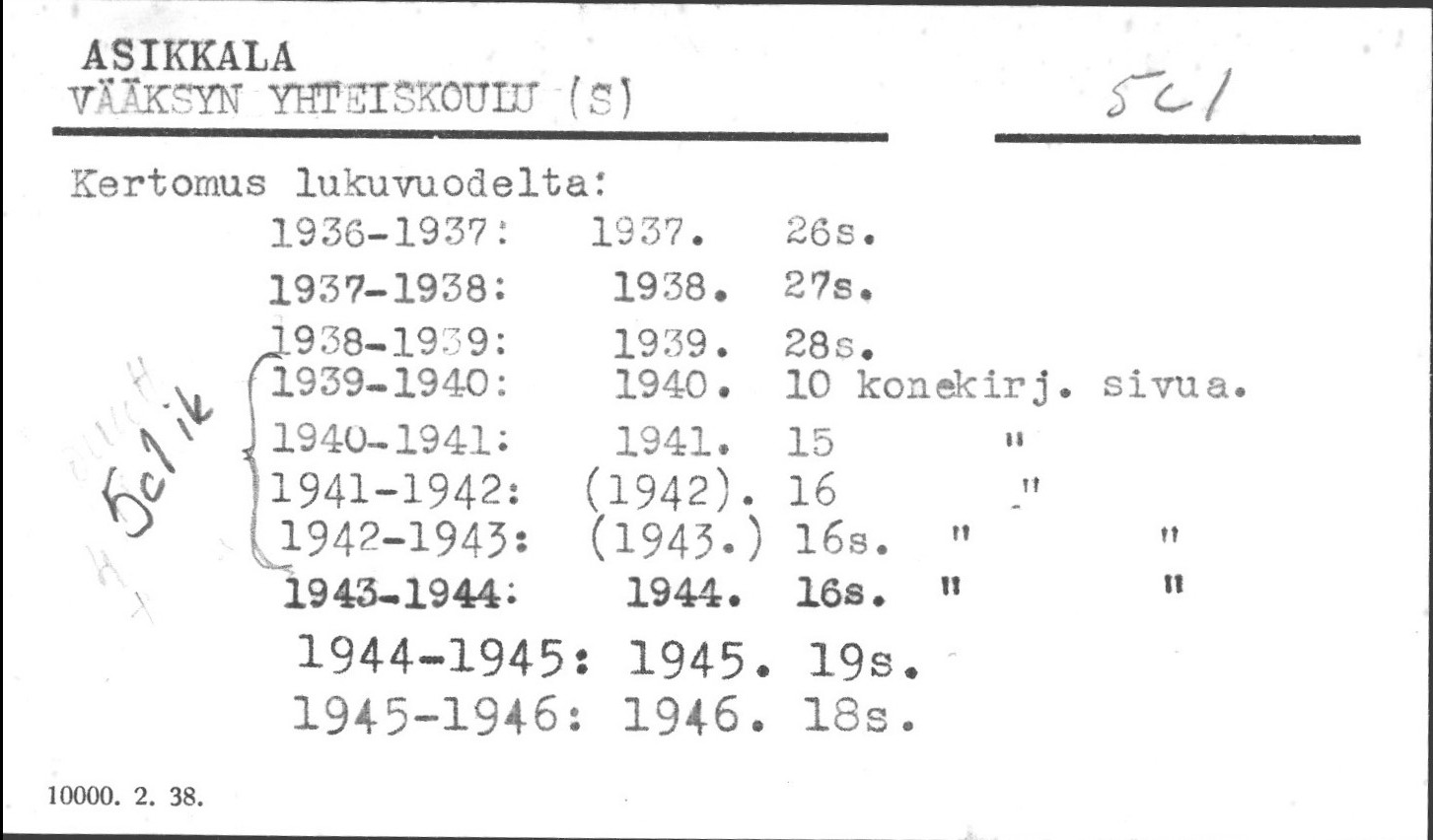 Koulujen vuosikertomukset.