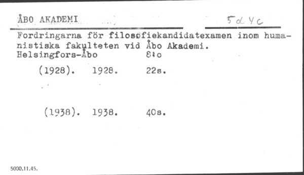 Åbo Akademi – Kertomukset. Ohjelmat. Luettelot. Tutkintovaatimukset.