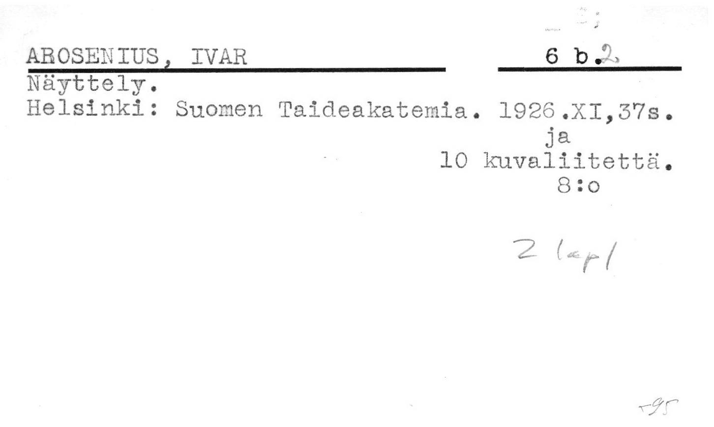Taidenäyttelyjen luettelot.