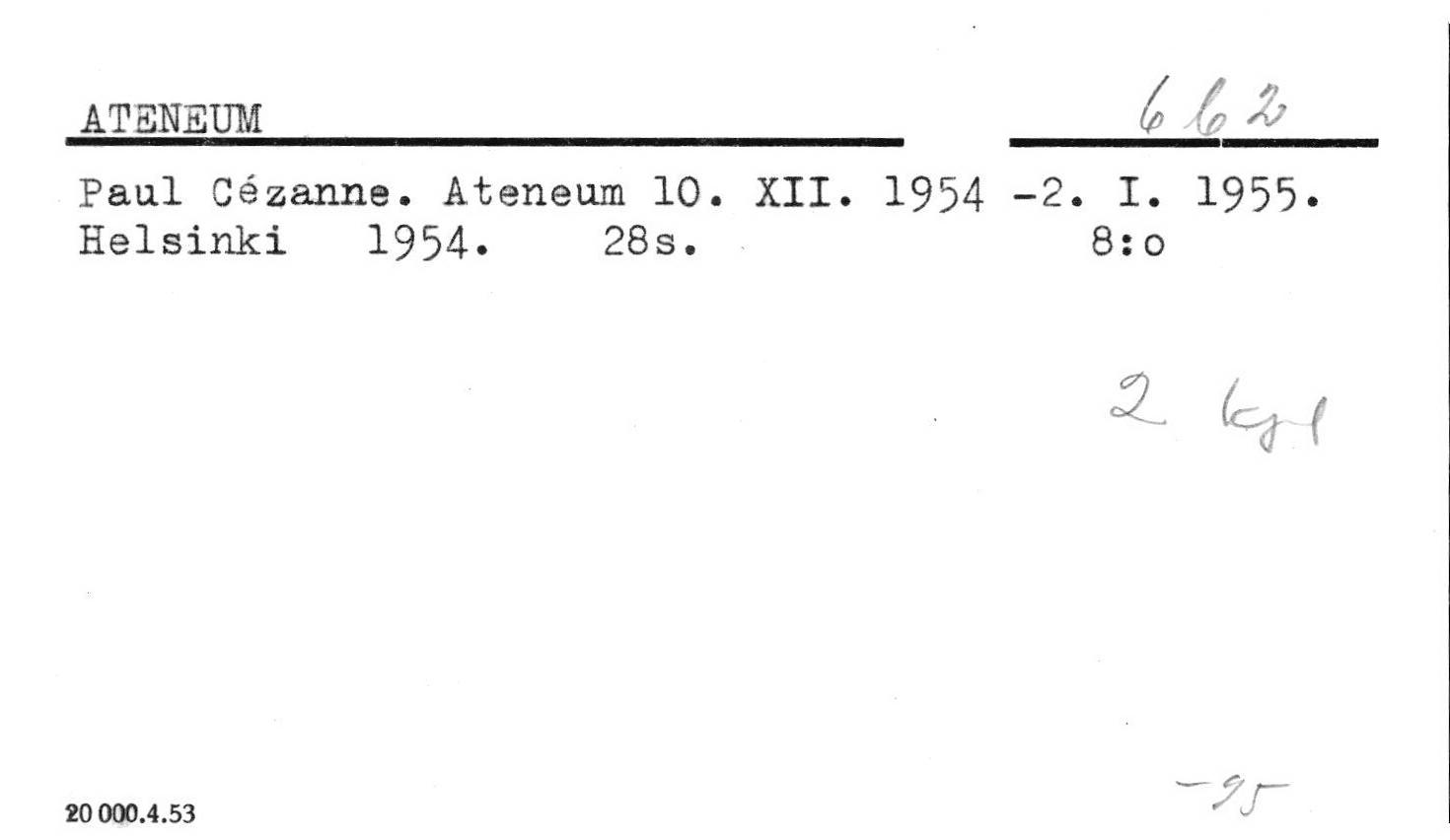 Taidenäyttelyjen luettelot.