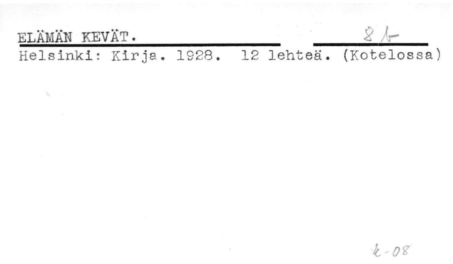 Kotimainen kaunokirjallisuus.