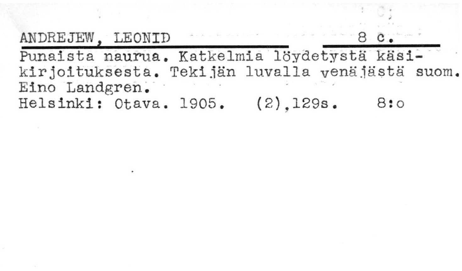 Ulkomainen kaunokirjallisuus.
