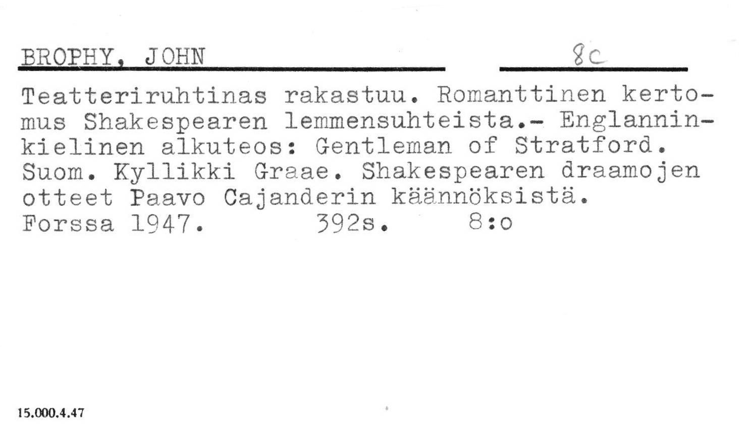 Ulkomainen kaunokirjallisuus.