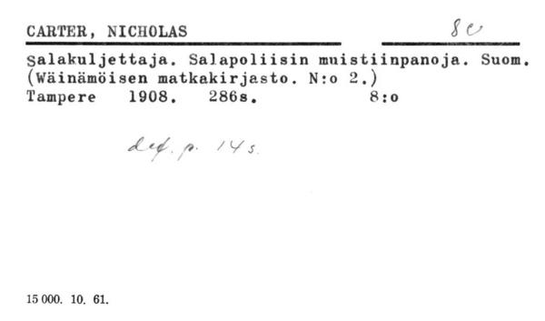 Ulkomainen kaunokirjallisuus.