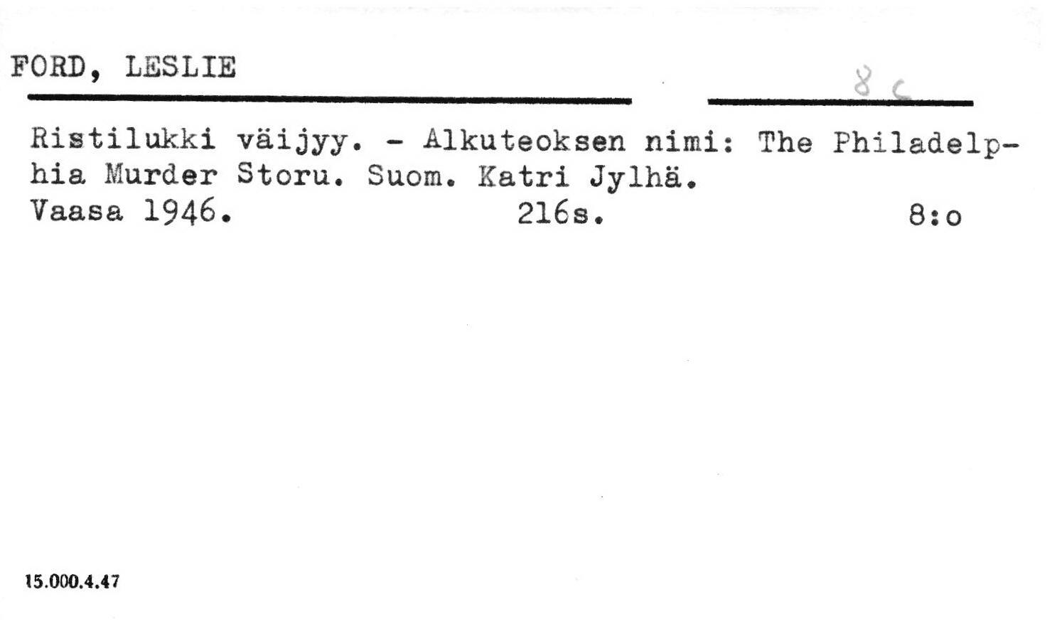 Ulkomainen kaunokirjallisuus.
