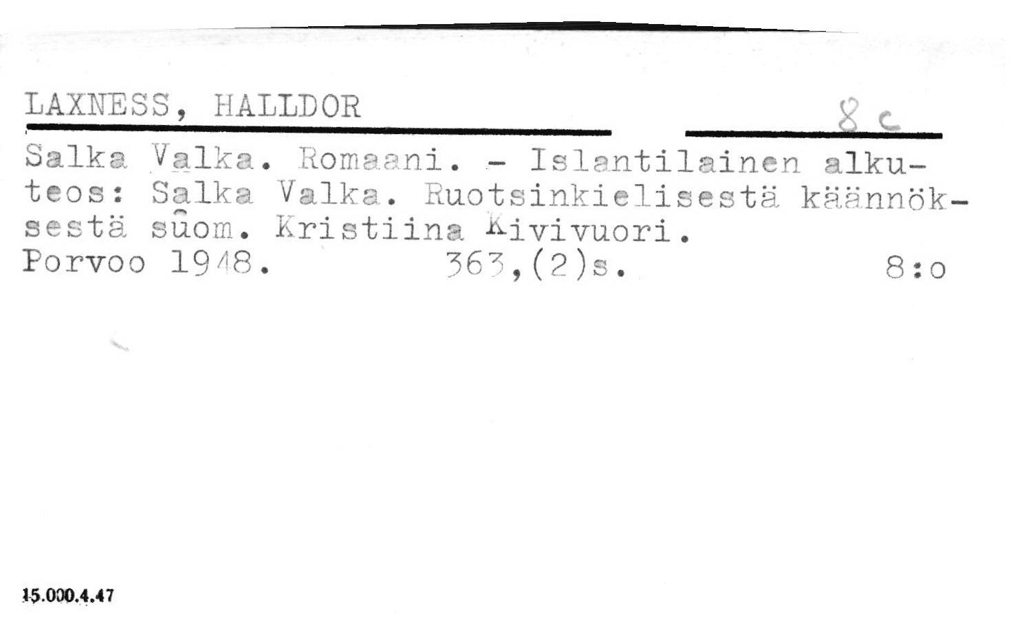 Ulkomainen kaunokirjallisuus.
