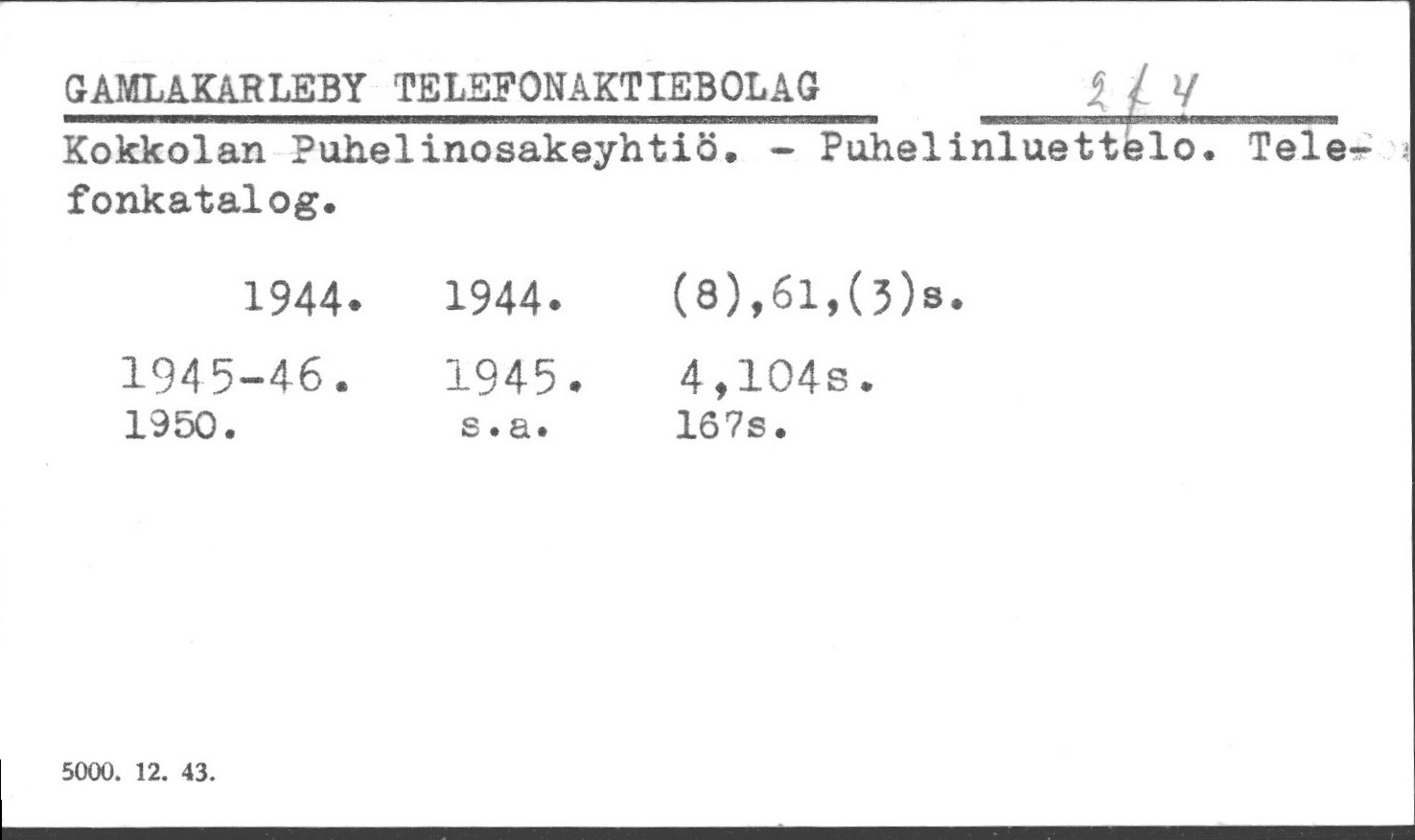 Osoitekalenterit. Puhelinluettelot.