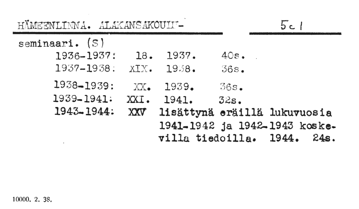 Koulujen vuosikertomukset.