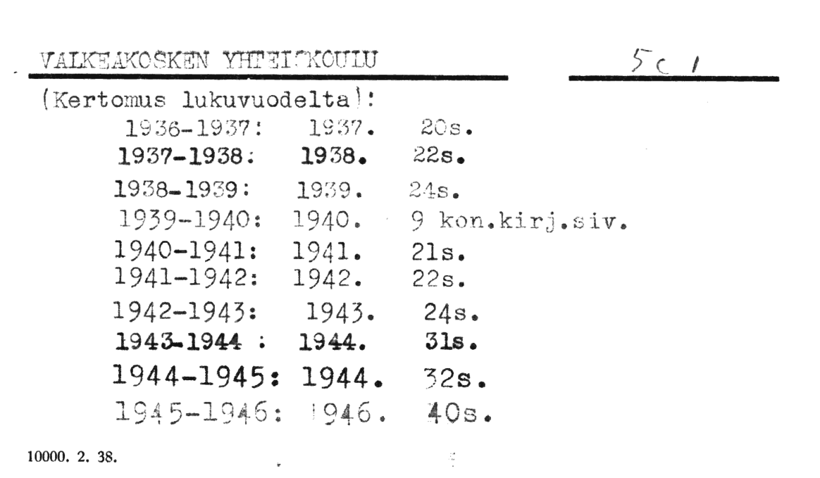 Koulujen vuosikertomukset.