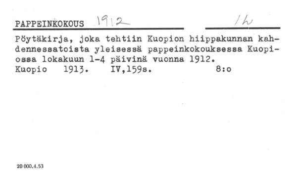Kirkollis- ja pappeinkokousten asiakirjat.