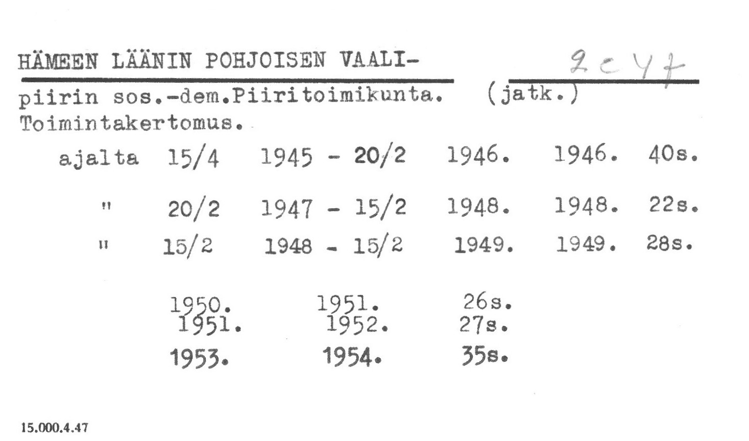 Suomen sosialidemokraattinen puolue. Svenska arbetarförbund. Suomalainen työväenliitto. Kristillinen työväenliitto.