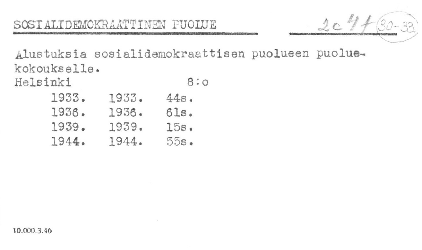 Suomen sosialidemokraattinen puolue. Svenska arbetarförbund. Suomalainen työväenliitto. Kristillinen työväenliitto.