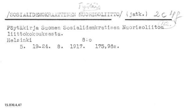 Suomen sosialidemokraattinen puolue. Svenska arbetarförbund. Suomalainen työväenliitto. Kristillinen työväenliitto.