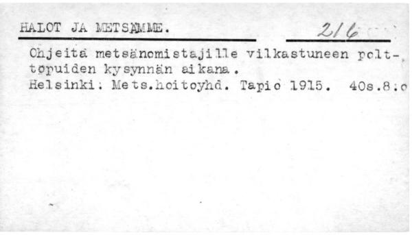 Metsänhoito. Kalastus.