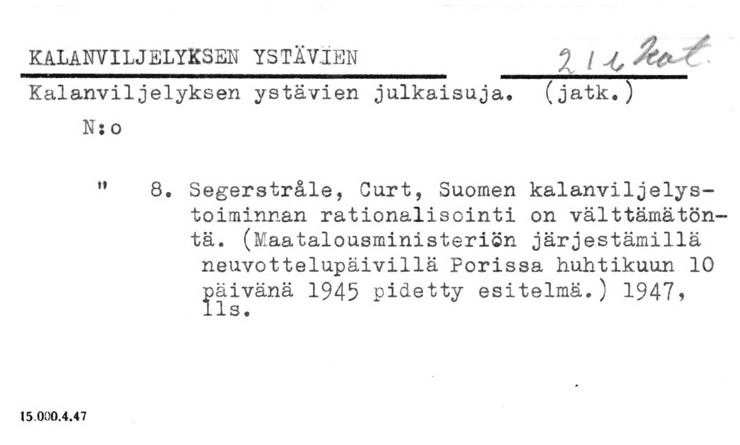Metsänhoito. Kalastus.