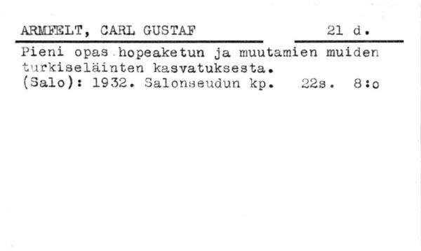 Käytännöllinen talous. Pienkarja. Turkiseläimet.