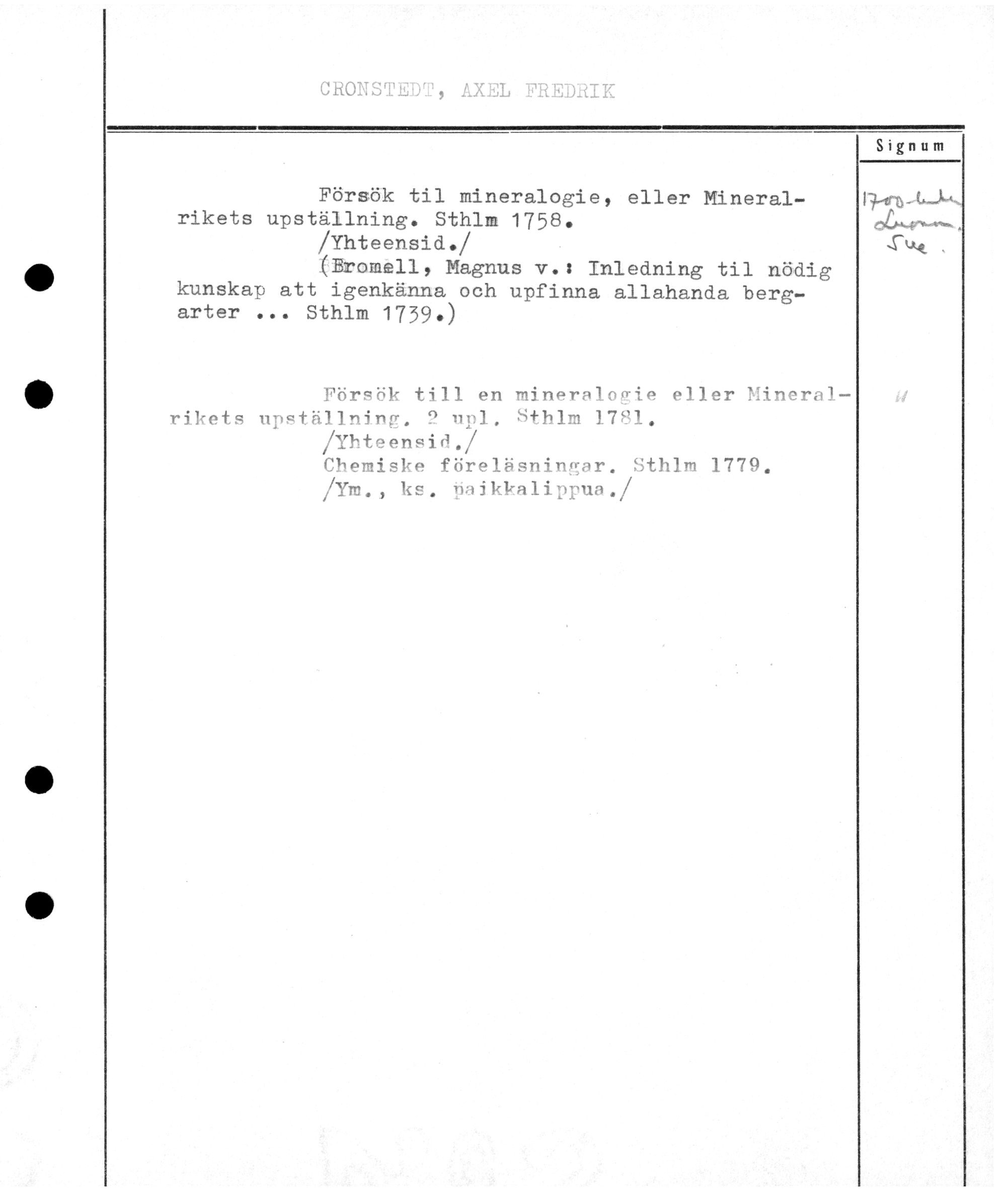 Varhainen aineisto - Aakkosellinen