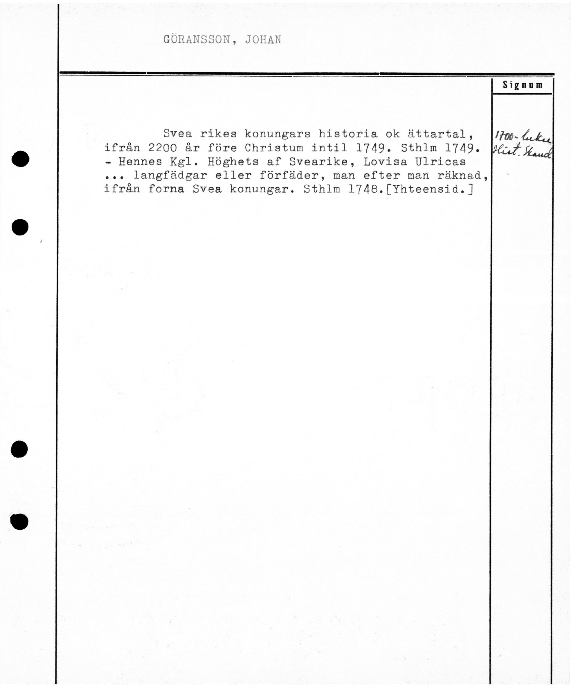 Varhainen aineisto - Aakkosellinen