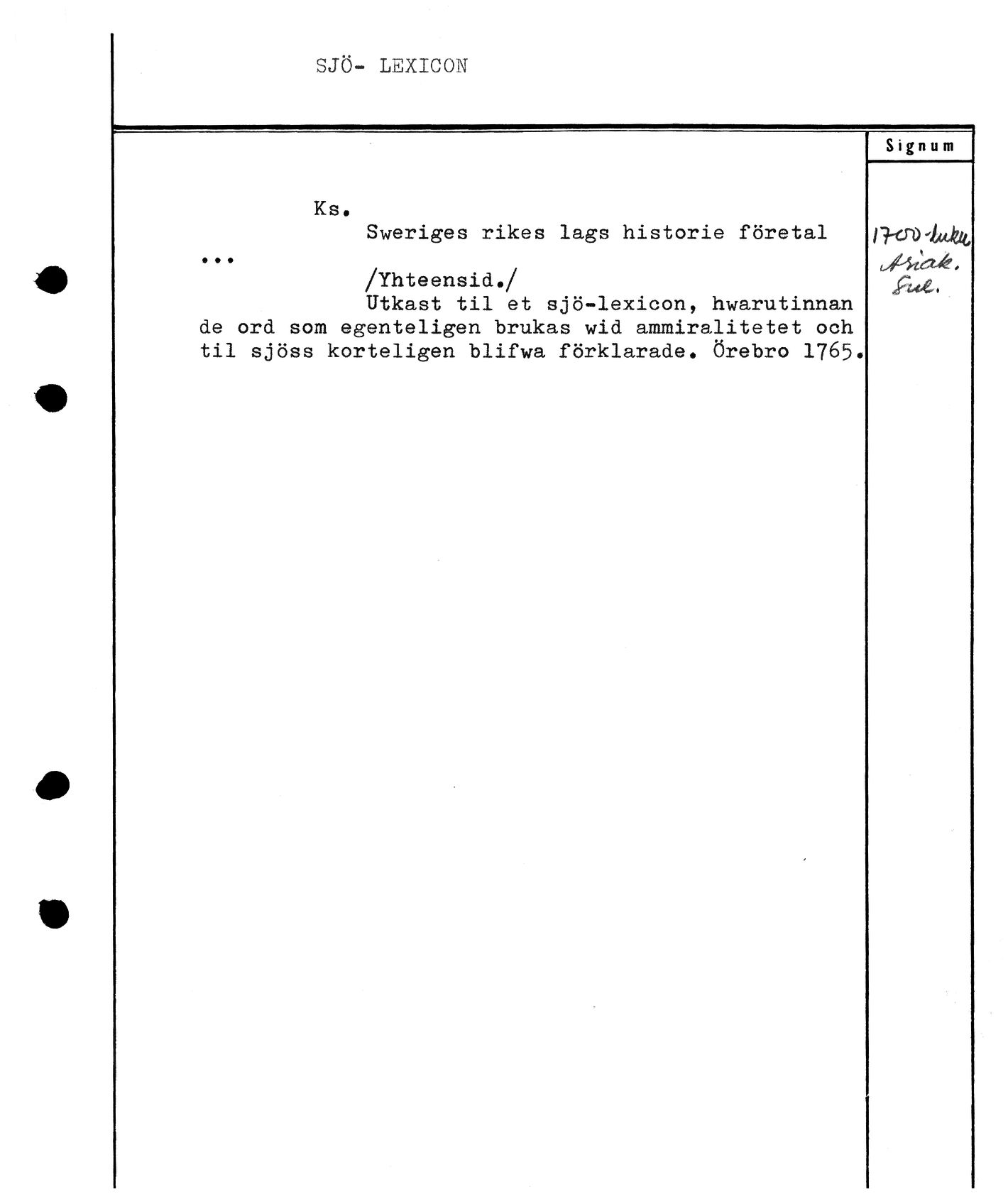 Varhainen aineisto - Aakkosellinen