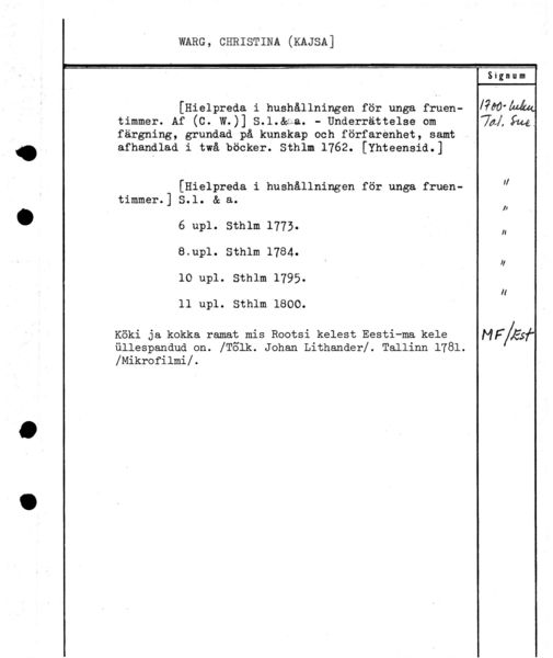Varhainen aineisto - Aakkosellinen